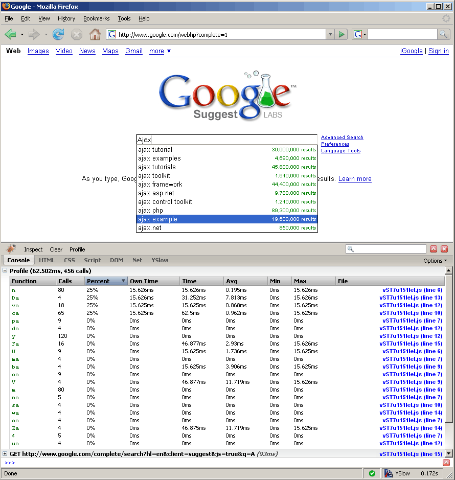 Figure 8-5. Firebug�s JavaScript profiler in action