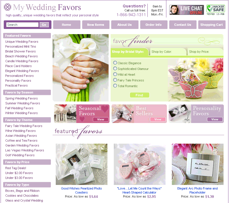 Figure 5-11. Conversion elements integrated into the MyWeddingFavors.com home page