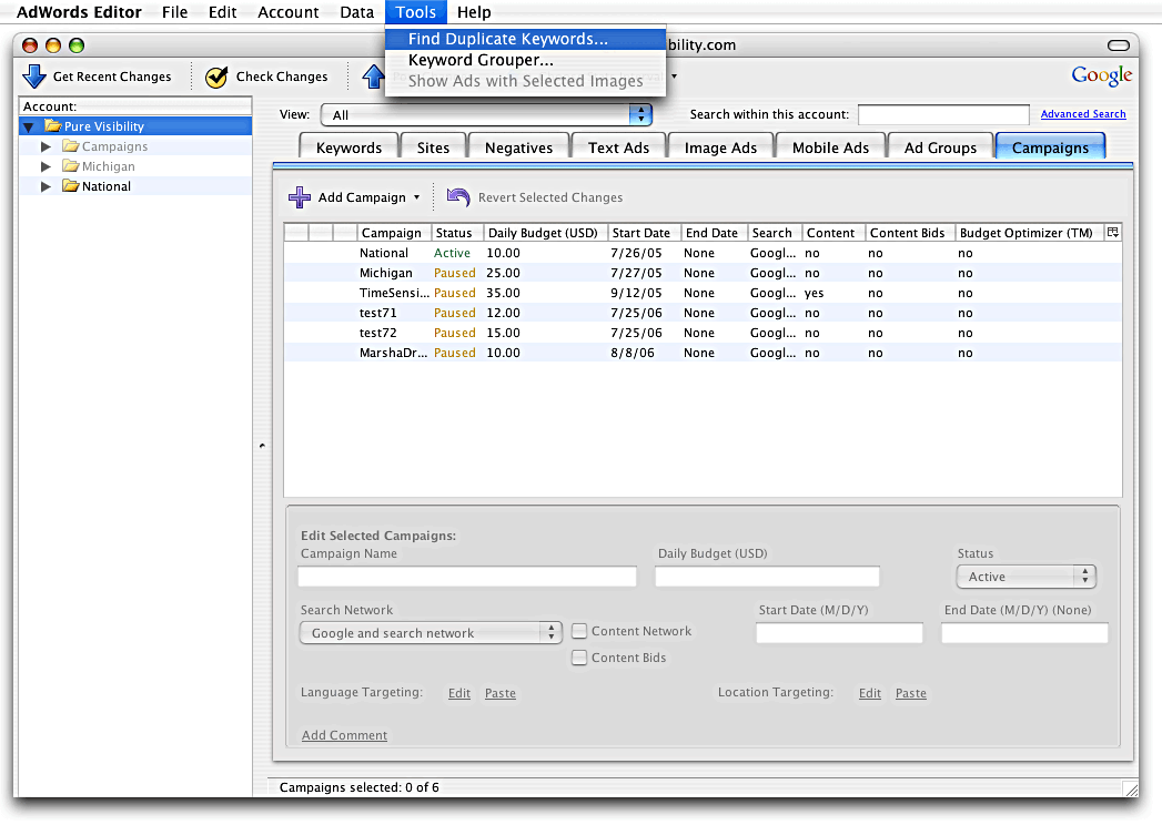 Figure 3-3. AdWords Editor�s Find Duplicate Keywords tool