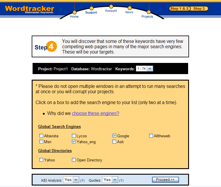 Figure 1-7. Choosing search engines to target for competitive analysis of keywords in Wordtracker