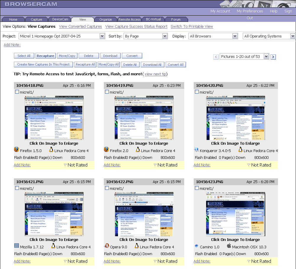 Figure 6-11. BrowserCam.com renders web pages on different browsers