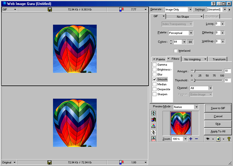 Figure 12.13 - Web Image Guru in action - smoothing a GIF in Windows