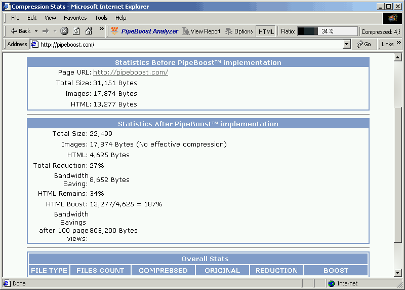 Figure 18.7: PipeBoost Analyzer - compression benchmarking tool
