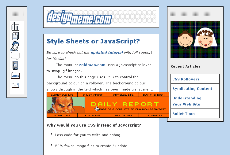 Figure 8.1: Designmeme.com's CSS2 image rollovers