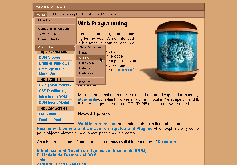 Figure 8.8: BrainJar.com's DOM-based hierarchical menus