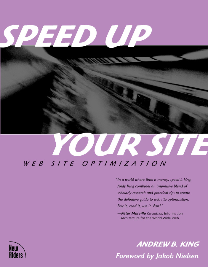 - "Andy King of WebReference.com has released a fine new book. Speed Up Your Site: Web Site Optimization (2003, New Riders, Foreword by Jakob Nielsen) is densely packed with tips and techniques for removing needless bandwidth from your HTML, CSS, JavaScript, images, and more...." - Jeffrey Zeldman, founder of many fine sites, Feb. 1, 2003