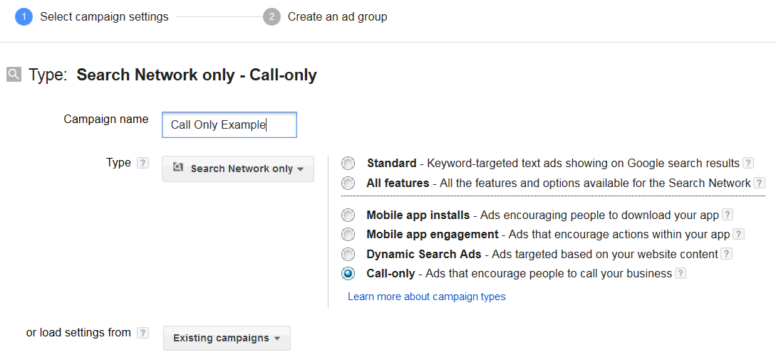 Note that we've found that broad matched and popular phrases (i.e., "Dentist") tend to be good candidates for call only ads. Make sure you've dialed back your weighting in your original campaign by -100% for mobile for your desktop campaign (otherwise you'll have two mobile campaigns for the same phrases). Google promises to make setting up call only campaigns easier in the future.